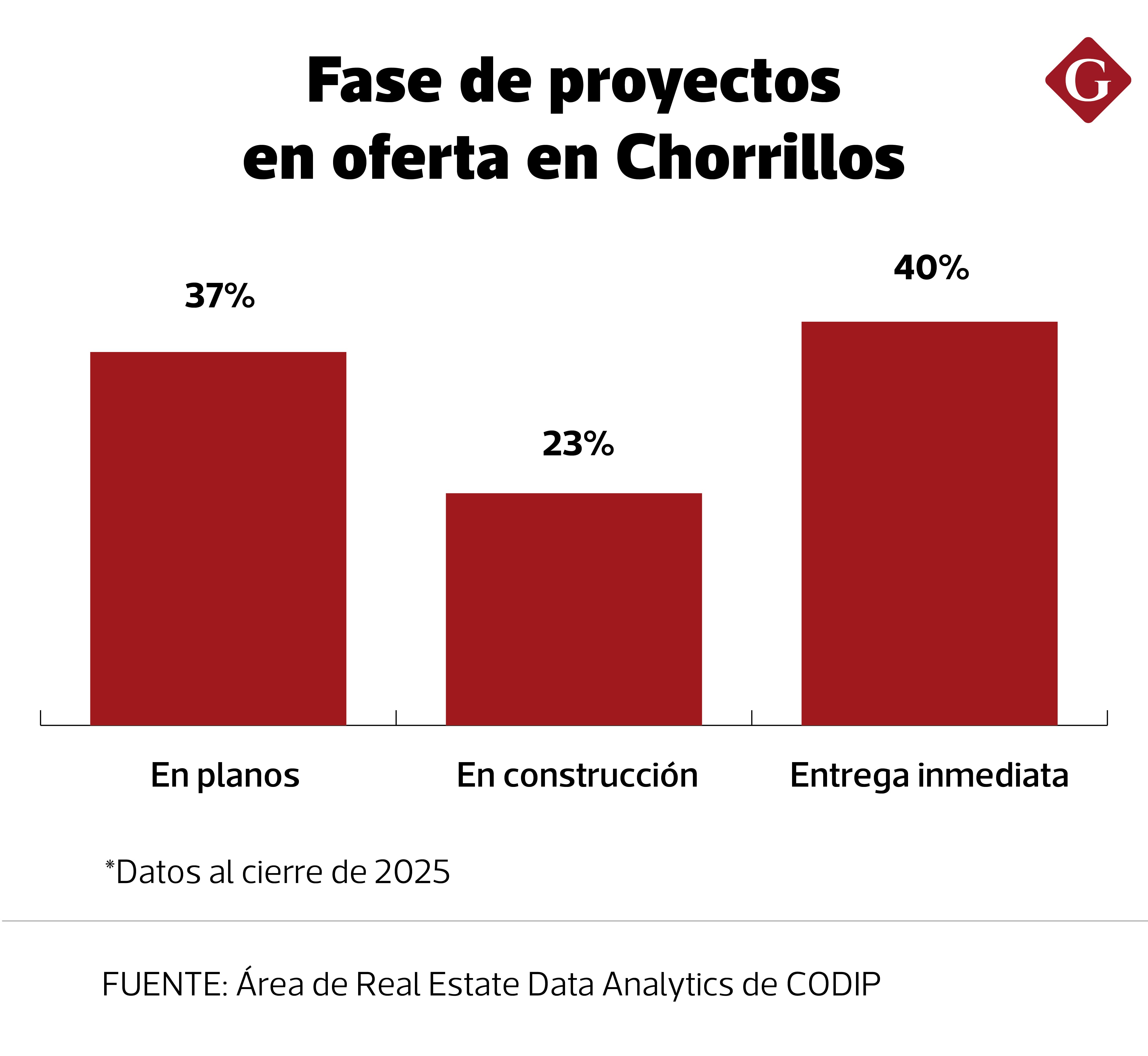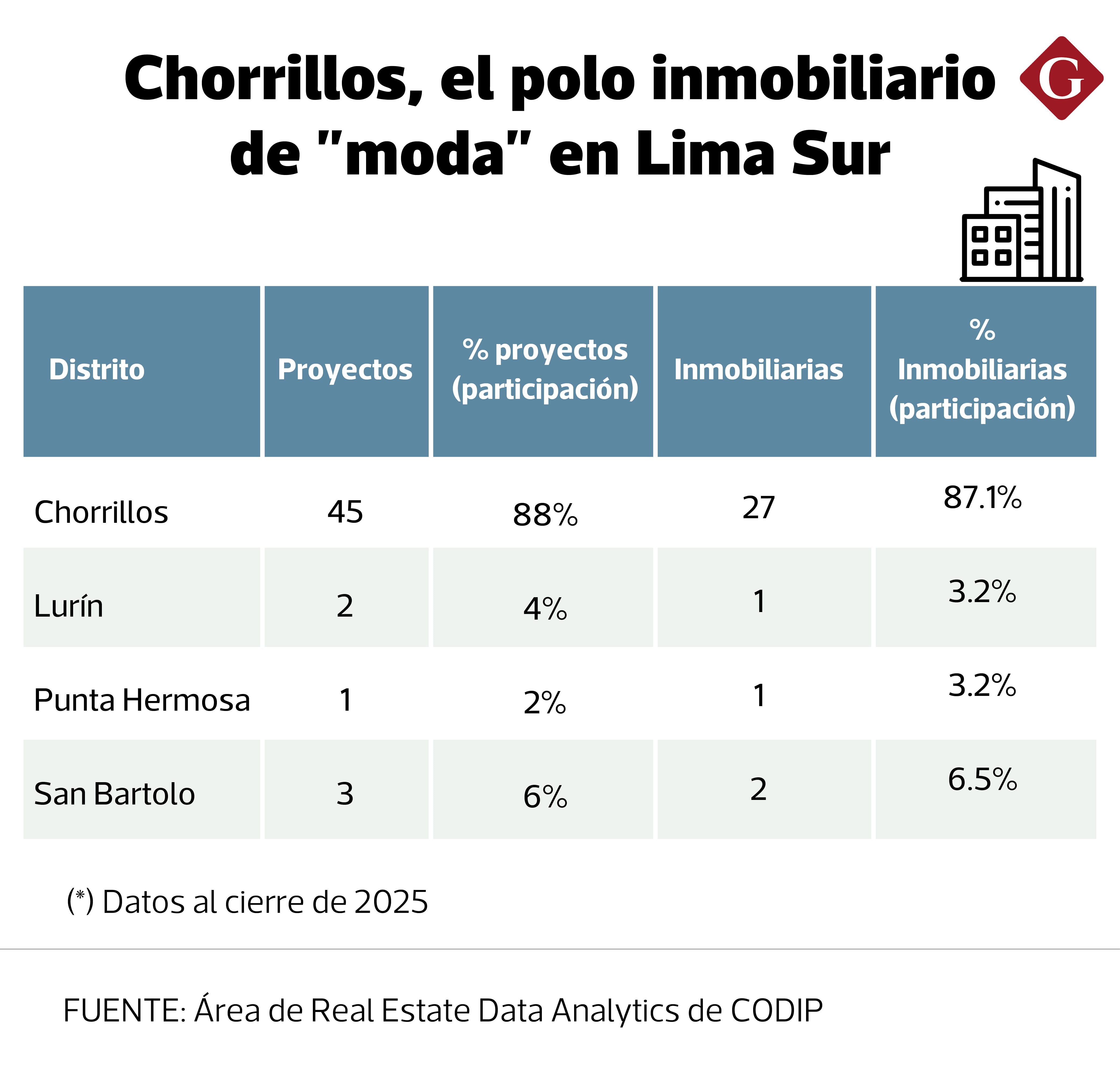 Este auge se sostiene con cifras. Según datos compartidos a este medio por el área de Real Estate Data Analytics de CODIP, al cierre de 2025, alrededor del 37% de la oferta en el distrito corresponde a proyectos en planos. La concentración territorial se evidencia en que, de los 51 proyectos que actualmente se comercializan en Lima Sur, 45 están ubicados en Chorrillos. “Hemos visto que se venden aproximadamente 100 departamentos por mes entre todos los proyectos”, aseguró Elisa Ríos, gerente de Negocio Inmobiliario de Besco.