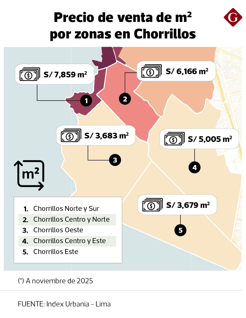 Hoy, Chorrillos mantiene un precio por metro cuadrado atractivo para el desarrollo inmobiliario. Aunque forma parte de Lima Sur, sus valores comienzan a equipararse con los de Lima Centro. En términos generales, se ubica en un rango intermedio: por encima de Lima Norte, pero aún por debajo de los distritos de mayor valorización como Lima Moderna y Lima Top. Sin embargo, años atrás se vendía al mismo valor.
